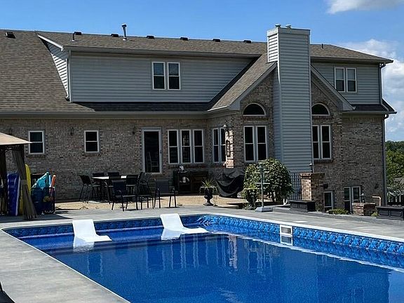 Here it is!! Beautifully updated home in Northridge Farms with a pool! You can literally walk to Locust Grove Elementary or East Oldham Middle School. You will be amazed with all this home offers. The open family room has laminate floors. The kitchen has been completely updated with beautiful cabinets and granite tops. The first floor primary suite has a vaulted ceiling and an updated primary bath. The second floor offers 3 large bedrooms and 2 full baths. The walk out basement is perfect for multi generational living, there is a family room with fireplace, game area, kitchenette (dishwasher use to be where the wine fridge sits!), and a bonus room that the current owner uses as a bedroom. Outside you have a full acre lot, fenced rear yard, with a HUGE in ground pool!