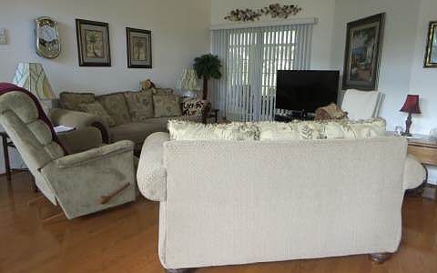 Contract in place, but accepting back up offers. This golf course home is backs up to # 3 fairway of the Deer Run Golf Course. IT HAS A BRAND NEW ROOF JUST INSTALLED IN FEBRUARY. The home features cathedral ceilings and beautiful hardwood floors in the living room, dining room, and third bedroom (which is currently being used as a den/office). The kitchen has beautiful new wood cabinets with pull out drawers in the lower cabinets and lots of counter top space. A walk-in pantry provides even more storage. Sliding glass doors from the breakfast nook, living room, and master bedroom lead out to the 21x30 lanai. The home is being sold as is. FREE ONE YEAR MEMBERSHIP AT SUN N LAKE GOLF CLUB IF PROPERTY PURCHASED IN 2017. Some restrictions apply.
