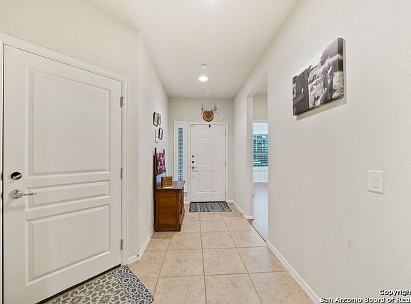 Welcome to this single story, 3 bedroom, 2 bath home located in the popular master planned community of Alamo Ranch. This home features and inviting open floor plan with spacious family room that opens up to a long eat-in kitchen with solid counter tops, backsplash, gas stove and breakfast bar. The master suite features a sitting area and a full bath with his and her sinks, garden tub and separate shower. Enjoy your time sitting on the covered back patio over looking the landscape and custom pathway!