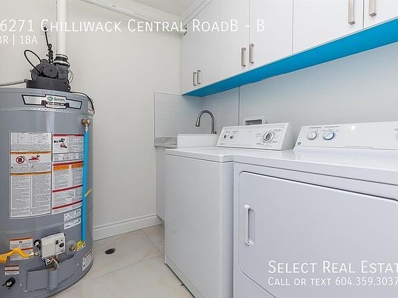 Address:B-46271 Chilliwack Central Road Description: Features: 2Bed 1Bath 883sqft. Driveway Parking Shared Laundry Lease Information: One-year Lease No Smoking NO Pets Appliances Included: Fridge, Stove Washer, Dryer Microwave Dishwasher Furnace Hot Water Tank Tenant pays: Hydro, Gas, Internet/Cable Deposit: Half Month's Rent Special Notes: Backyard Shared Utilities Split (30%/30/40%) Professionally managed by: Select Real Estate 520 - 45715 Hocking Avenue, Chilliwack, BC