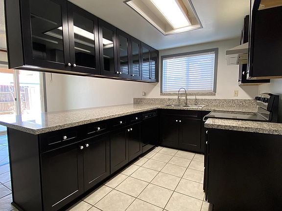 Spacious Move-In Ready beautiful 3-bedroom, 2-bathroom home is recently remodeled throughout with granite and quartz countertops in the kitchen and all bathrooms. Exterior of the home was freshly painted and done a year ago. Whole roof is recently reinstalled brand-new in 04/24/2024, A/C was serviced on 09/18/2024, and termite work with fumigation is done on 10/18/2024. This home has an open floor plan with a dining area, breakfast bar, a large great room, and has ceramic tile in the living room, kitchen, bathrooms, and hallway. There is no carpet throughout. All bedrooms have large closets and ceiling fans. There is a covered patio and generous sized backyard. Home sits on a quiet street and has a 2-car garage. Additional cars can be parked at front yard. Don't miss this opportunity to see this cute home.
