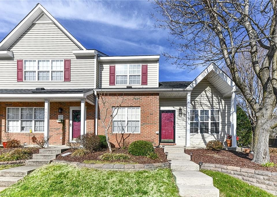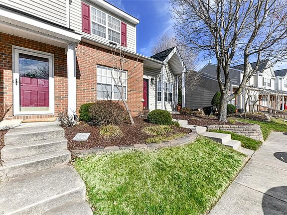 MULTIPLE OFFERS! HIGHEST AND BEST BY FRIDAY 1/27 at NOON. Hard to find end unit townhome in a cul-de-sac with an inviting front porch, new outdoor landscaping with a paver wall. The Primary bedroom has a large closet space, and a nice bath with granite tops and a double vanity! The living area has a vaulted ceiling and new gas logs in the fireplace. The upstairs space has a a Bedroom and a LOFT that can be used as a bedroom, office, or exercise room along with a full bath. Lots of windows, bright, and airy with an attractive exposed stairway. Kitchen has bar seating, granite tops and stainless steel appliances along with a custom tile backsplash with French door that leads to large private wooden deck. Great storage throughout. Rare basement with den perfect for man cave and has a bedroom with a full attached bath! Conveniently located near shopping, groceries, and restaurants. Easy access to downtown GSO, Friendly Center Shopping, and PTI airport.