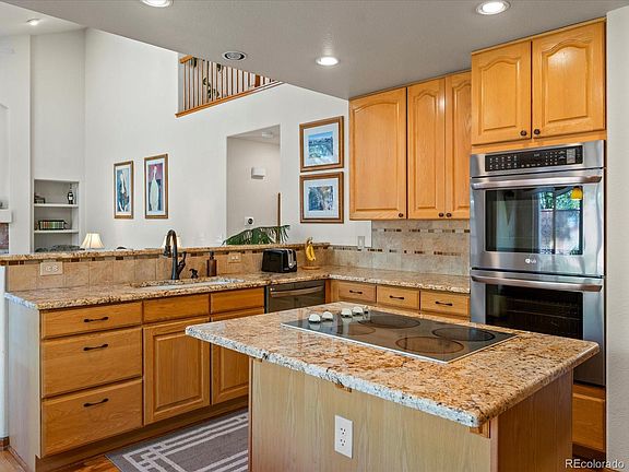 - Description: Updated, Recessed Lighting, Stainless Steel Appliances, Double Oven, Island W/Cooktop, Granite Countertops, Custom Tile Backsplash, Hardwood Floors