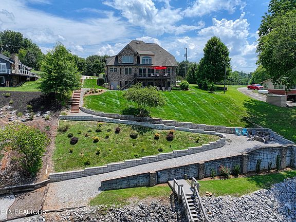 The Million Dollar Views you've been looking for! Year-Round Deep Water on the Main Channel of the Tennessee River. This 2015 CUSTOM BUILT home is a 2 story basement with 4 bedrooms, 3 1/2 bathrooms. Master Suite on the main level with gorgeous lake and nature views. 3 additional bedrooms/2 full bathrooms are on the 2nd floor plus a bonus room. 3 car side entry garage Noteworthy aspects / improvements of this property: Covered dock with storage - boat and Seadoo lift (the dock is featured on Dock & Deck website) Trex decking Stone wall built on the walkway to the water plus steps from the driveway Slider doors on main and basement levels Trees added Professional Irrigation with 10 zones and pumped from the lake Landscape lighting on a timer Reinforced and added rip rap to waterfront TVA permit is on file and 820 contour line is across the rocks near the water (Both Files are attached in documents) The Interior is also breathtaking! Open Concept with the Dining, Great Room and Kitchen as a welcoming space. Custom cabinetry in the kitchen offers a warm and traditional feel with a large kitchen island. Double ovens and a new refrigerator! Windows, Windows, Windows across the entire house on all 3 levels to take in those peaceful views. The basement is roughed in and could easily become additional ''hangout'' space for lake days - perfect entertainment opportunities! Rec space and a blank slate for your needs / plans! Radon system installed and Plumbed for water. Follow the back yard stairs and stone walled, sloped gravel walkway to your own year-round vacation spot! The path also offers nighttime lighting, large firepit area, numerous seating options for entertaining or relaxing to take in the sights and sounds of nature in beautiful East Tennessee. 1000 Gallon Septic permit is for 3 Bedrooms, and field lines are located in the front yard if your wish is to install a pool in the back yard. Septic inspected and pumped Aug 5, 2024.