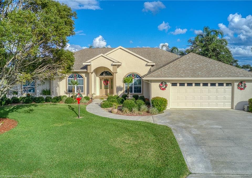 Welcome home to this exquisite custom-built masterpiece located directly in between the #3 Fairway of the championship Deer Run Golf Course of Sun N Lake in Sebring, FL. The stunning curb appeal of the ornate rounded windows, intricate detailed decorative columns, underground electrical (no utility poles!), and lush landscaping will make you happy to return home after a long day! The home was custom built in 2003 by the original/current owner and the pride in ownership is abundantly apparent throughout. Every inch of this spacious 3 bedroom (plus extra office!), 2 and 1/2 spotlessly clean bathrooms, custom in-ground pool home is absolutely beautiful and extremely well maintained. Generously sized formal dining area to the right as you enter the home, lovely breakfast nook featuring tinted Mitered glass windows overlooking the screened-in pool area and golf course. Custom crown molding, white spotless baseboards, and ceiling fans throughout all rooms with a luxurious recessed Trey ceiling in the master bedroom and family room. Over 2,700 square feet of tile flooring and soft, inviting carpet in the bedrooms/living areas both featured in neutral colors. Split floor plan to allow for guests to enjoy 2 bedrooms and their own bathroom in privacy during their visit. The centrally located family room boasts 10.5 ft. high ceilings, custom ornate decorative entryway columns, and elegant niches to embellish with your own decorative style! The spacious master bedroom offers both magnificently organized walk-in closets and convenient access into the back patio area. The opulent master bathroom includes deep soak tub, two separate sink vanities with cultured marble countertops, and separate fully tiled walk-in shower! Exterior automatic well-sourced irrigation system to maintain the vibrant Floratam lawn. The custom in-ground heated saltwater pool surrounded with plenty of concrete patio space and elegant cascading waterfall is truly a showpiece spectacle! Oversized indoor utility room boasts supplemental cabinets and counterspace. If you are looking for the perfect home to enjoy the ultimate Florida lifestyle on a beautifully maintained golf course - congratulations, you have found THE ONE!