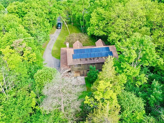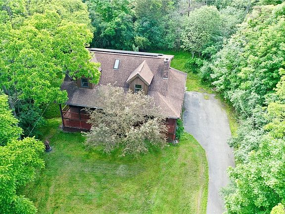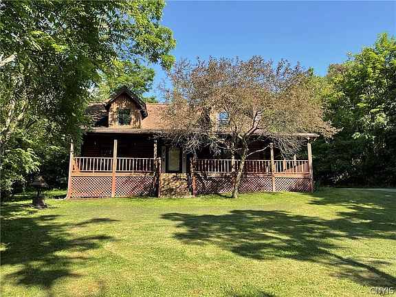 Nestled in the beautiful Fingerlakes, just south of Auburn you will find this unique home on 1 acre overlooking Owasco lake. The wooded lot gives a sense of privacy while still allowing views of Owasco lake, the wrap around porch is a perfect place to take it all in. As you enter the home you are greeted by an open floor plan and tall ceilings. The kitchen, dining and living area provide a perfect layout for entertaining or relaxing in front of the fireplace. Also on the first floor are 2 nice sized bedrooms and full bathroom. As you head upstairs you will find a very large master en-suite and another nice sized bedroom. The basement holds tons of potential as a workout room or recreation area or it has the potential to be finished into more living space. This home is also equipped with solar panels on the east facing roof, an added benefit to save on energy costs. The warm inviting cabin feel of this home is hard to find and exceptionally unique. Don't miss out, schedule your showing today!