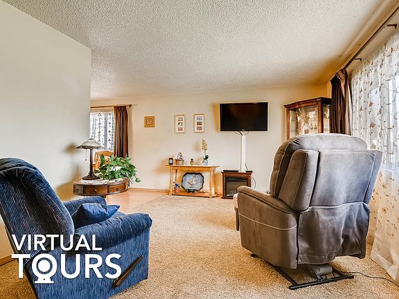 Move-in ready 4 bd / 3.5 ba home in a convenient Colorado Springs location! This split-level home offers an updated kitchen, huge backyard, and owned solar. The interior is flooded with natural light, creating a warm and inviting environment to live, work, and entertain in. Host guests in the formal living and chandelier lit dining rooms, and cozy up by the fireplace in the den. The kitchen sits in between it all, equipped with new quartz countertops, refaced wood cabinets, glass tile backsplash, and a stainless steel sink. There's one main floor bedroom, perfect for guests, as well as a half bath/laundry room. Upstairs, you'll find three more bedrooms and two baths, including the primary, which contains mirrored closets and an ensuite bath. A bonus office and partially finished basement complete the interior. Head out the sliding glass doors to the fenced-in backyard, where you can BBQ on the cement patio and customize the fenced-in open space. Other features: Central A/C and Forced Air heating; Two-car garage; Double pane windows; Newer water heater and roof. Centrally located to multiple shopping centers, parks/trails, downtown, and the airport, with easy access to hwy 24 and Denver! Buyer should verify all information.