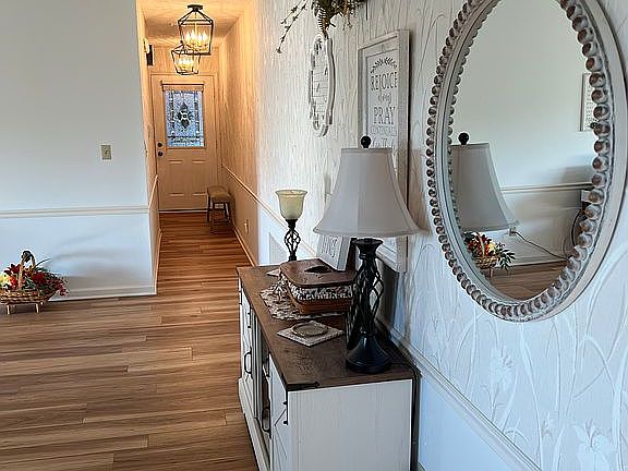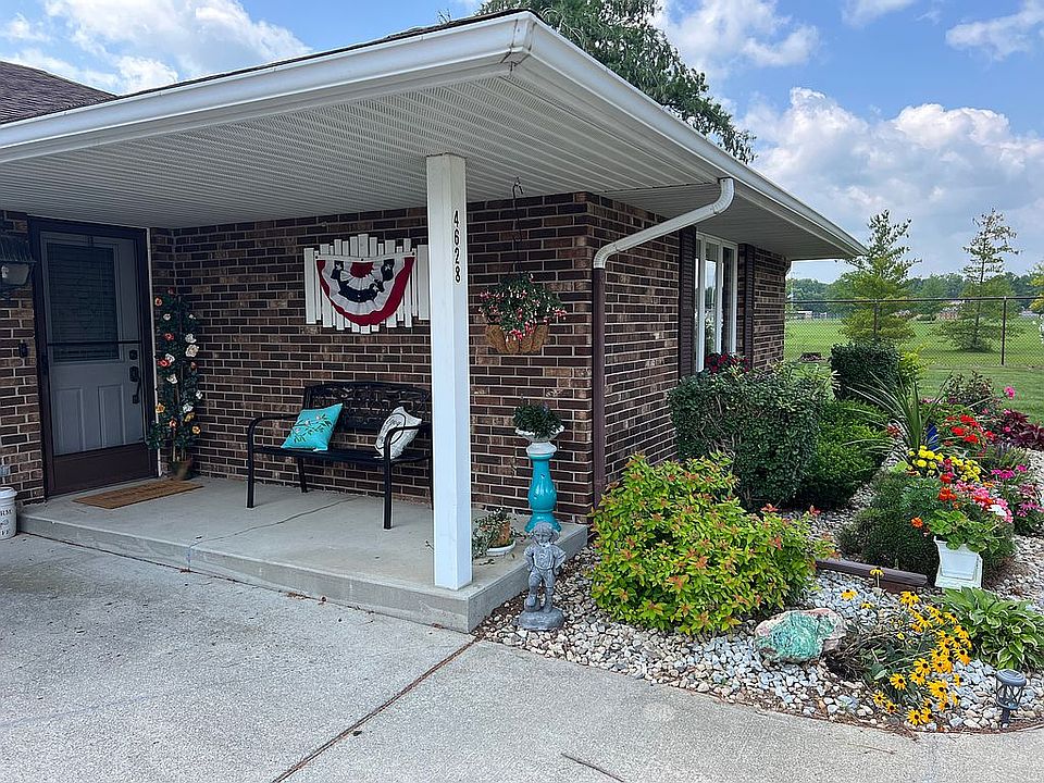 If you like light and airy, French Country/Farmhouse décor, you will love this beautifully renovated open floor plan condo filled with gorgeous upgrades bordering on IWU’s vast country open field lawns. Front view boasts an enticing lake with a fountain that flows 8 months a year. Highlights Premium vinyl planked waterproof flooring with authentic wood look and feel. Exquisite all new lighting that truly gives an elegant feel to this condo oasis. All new fingerprint resistant stainless-steel appliances in both the kitchen and laundry room. The newly renovated kitchen has a white/grey quartz breakfast bar with marble herringbone backsplash that matches the other quartz countertops and backsplash. The beautiful granite farmhouse sink is a focal point with brushed gold fixtures and additional marble backsplash trimmed in gold. A new coffee, tea, and smoothie bar was added adjacent to the spacious and convenient laundry room area with new matching cabinets. The laundry room has plenty of space to store, fold and hang clothes. New countertops and cabinets are perfect to accommodate multiple countertop appliances. New white 2” easy to clean cordless blinds throughout. New barn door added to the renovated master bathroom allows for easy access to new vanity with beautiful marble countertop and brushed nickel fixtures and vanity lights. Matching marble subway tile over the bathtub. The second bathroom also has a new vanity with marble top and brushed nickel fixtures and vanity lights. Marble hex head tile over the shower nicely high lights today’s new classic trends. Open floor plan with large great room opens into dinning and kitchen area. The large bay window overlooks new landscaping and numerous mature trees with memorable sunset views from the great room and back porch area. Relaxing and comfortable back porch makes you feel as though you are living in the country. Garage stays cool in the summer and warm in the winter allowing for room expansion if desired. There is an abundance of shelving for plenty of storage. Cost effective heating and cooling in well insulated brick condo built on a slab in 1989 by Dave Belemy. Two bedrooms, two bathrooms, one car garage, 1284 sq ft