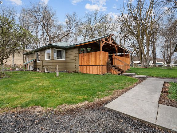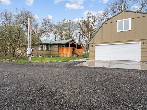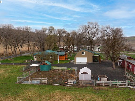 This rare 9.10-acre Exclusive Farm Use (EFU) property features sought-after water rights from Wildhorse Creek, offering excellent potential for cultivation or a peaceful rural lifestyle. The well-maintained 4-bedroom, 2-bath home spans 1,950 square feet with natural hardwood floors and abundant natural light. Recent updates include a remodeled kitchen with cherry soft-close cabinetry, granite tile counters, and stainless steel appliances, plus a modern walk-in shower in the bathroom. The home also boasts updated plumbing, fresh paint, a new water heater, and four mini-splits for efficient heating and cooling. The exterior includes freshly painted cedar shake siding and a well-maintained metal roof. Enjoy the hot tub on the covered deck, a perfect place to unwind and enjoy the serene surroundings. The property is equipped with a 99.5-foot well, a ½ horsepower submersible pump, and a large septic tank. It holds two separate water rights dating back to 1918, ranked number 9 of 115 for the area, ensuring exceptional irrigation potential. The property includes two irrigation pumps, upgraded electrical panels, and a complete irrigation system with buried main line risers, a big gun sprinkler, wheel line, hard line, and all associated equipment. Fully fenced and cross-fenced, this property is ideal for livestock and farming. It includes horse stalls, a barn/animal shelter, a large chicken coop, and a garden shed. The thriving juvenile orchard offers fruit trees, a garden space, a greenhouse, and well-established grapes, gooseberries, strawberries, and rhubarb. A newly built 24x28 detached garage provides ample workspace with a 24x14 loft, 220 wiring, and water/toilet rough-ins. The garage features cement board siding and a metal roof, along with a covered RV parking space. This is a rare chance to own a fully equipped farm property with premium water rights. Whether you want to board horses, build an arena, or start a homestead, the possibilities are endless!