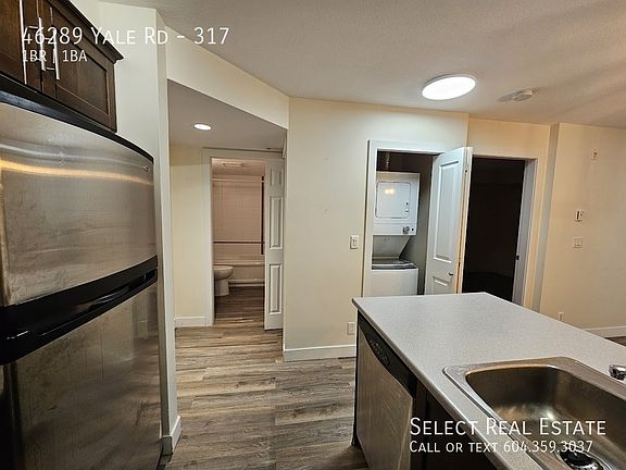 Address: #317 - 46289 Yale Road, Chilliwack, BC V2P 0B9 Date Available: March 1st, 2025 Description Single bedroom, open concept apartment is ideal for individuals or couples seeking a cozy living space. The large patio provides an extension of the living area, perfect for outdoor enjoyment. The property includes one secure, underground parking spot, offering peace of mind and protection for your vehicle. Lease Details Lease duration: 1 Year Deposit: Months Rent. Pet Deposit: Months Rent if applicable No Smoking Property Details Bed: 1 Bath: 1 SQFT: 570 Pet Details Pets(Yes/No): No Type Allowed: N/A Number: 0 Size Restriction: N/A Exterior Details BBQs allowed(yes/no): Yes - Electric Only Parking type and how many: 1 Underground Spot Yard Usage: N/A Yard fully fenced: N/A Shed Or Shop Usage: No Appliances Included Fridge: Yes Range: Yes Dishwasher: Yes Microwave: Yes Washer/Dryer: Yes Shared Laundry: No Pay Laundry: No Fireplace: No Air conditioner: No Standalone freezer: No Utilities Gas: 100% Tenant Hydro: 100% Tenant Internet/Cable: 100% Tenant Water, Sewer, Garbage: 0% Tenant Utility Type Heat Source: Electric Baseboard Septic/Sewer: Sewer Water Source: City Tenant Responsible for Septic pumping: No Strata Age Restriction: No Storage Locker: TBD Move-in/out Fee: $75 Move in Scheduling: Yes