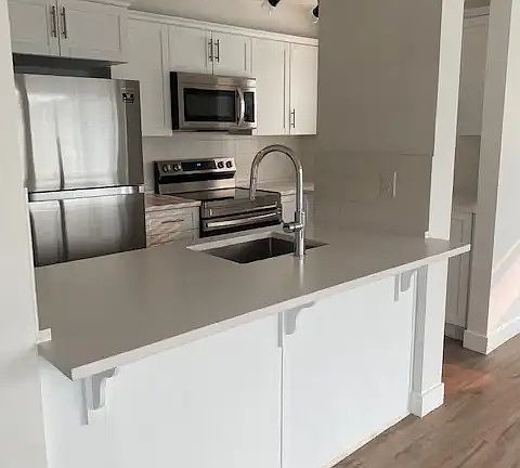 Come and view this bright, south west facing unit that offers an open concept floor plan. Everything has been FULLY RENOVATED and shows as brand new. This unit comes fully loaded with bright white cupboards, brand new stainless steel appliances, and an in-suite washer and dryer. You will also find a very large storage room, 2 good size bedrooms, 2 bathrooms with tubs and 2 parking spaces (1 underground, 1 outdoor) and a patio included. Security Deposit: Half Month's Rent Move In/ Move Out Fee are tenant's responsibility: $75.00 Garbage, water, sewer included Tenant pays Hydro Bill 1 year lease required ** Credit check required** NO smoking. NO pets