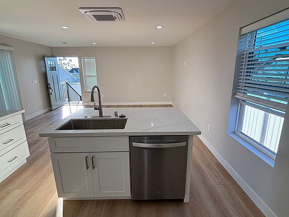 Brand-new 2BR/2BA detached home (1,000 sq ft) in San Diego, the largest of three on the property. Private street access with a private patio and access to a shared low-maintenance yard. All utilities included (solar, water, trash), plus a full stainless steel appliance package and in-unit washer/dryer. Modern finishes: luxury vinyl plank flooring, designer tile, quartz countertops, and ceiling-mounted mini-split AC. Street parking available. Move-in ready now. Ideal for a professional couple or small family; one small pet may be allowed with an additional deposit. Quiet, convenient location near I-8/I-94, with easy access to beaches, Mission Valley, SDSU, and Downtown. Owner pays all utilities.