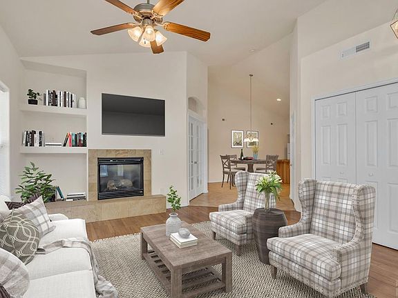 This quality built, Regency Crest townhouse is ready for its new owner! Whether you are looking for your first home or it's now time to downsize, look no further. There are 3 bedrooms and 2 baths all on the same level, with an attached 2 car garage...all with no steps or stairs for entry! There is new carpeting and new interior paint. Both the front and backyard are beautifully landscaped with lush green lawn, trees and an automatic sprinkler, with a very nice size privacy fenced backyard. Plus this home features: upgraded insulation, low E vinyl double pane windows, refrigerated central AC, low maintenance stucco exterior, close to a beautiful centrally located park, all in a safe & covenant protected community. Or if this one doesn't quite meet your needs, have your agent give us a call, we've got more, resale & NEW construction! The Association provides trash, common area maintenance, covenant enforcement, management, and architectural control with the quarterly assessment of $75 and pets are allowed. All of this, just a phone call away...so call today!