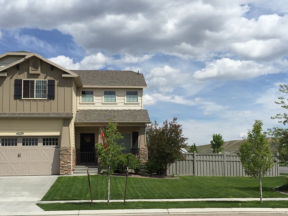 Beautiful immaculate former model home on a corner lot that has only been lived in for under 2 years total! Better than new turn-key fully completed inside and out! Loaded with upgrades and high end finishes throughout including 2x6 construction, wood, tile, and slate stone flooring on main floor and all wet areas, solid slab granite counter tops throughout, vaulted ceilings in every bedroom, nine foot ceilings on main floor, two tone paint throughout, hard wired security system, huge cold storage with fire safe door, and a fully finished basement with a large multi-purpose rec room and a fully wired projector ready movie theater complete with wet bar! This home is beautifully landscaped with about 12 mature trees and wall to wall garden and flower beds with custom stained curbing, fully custom fenced yard with a huge concrete patio great for entertaining, natural gas BBQ pit, huge 12 x 12 ft custom sand box for the kids, and a huge trailer pad that can accommodate up to a 40 ft trailer with 30 amp RV power outlet! Finished garage with insulated carriage door and option to heat and cool. One of the few existing homes in neighborhood pre-wired with fiber optic high speed internet! This home is also right across the street from a large park and community amphitheater! This home has it all and will not last long! For sale by Greg at Western Realty MLS# 1303259.