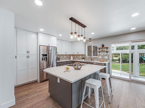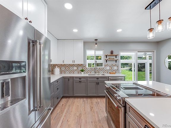 The kitchen was updated in 2021 with new cabinets, quartz counters, and stainless steel KitchenAid appliances. A large sunroom off the kitchen is the perfect spot for morning coffee, a workout area, or space to play with tons of natural light and views of the yard and park.