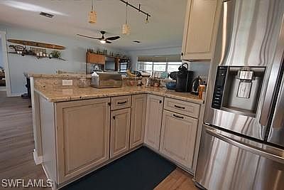 This renovation will knock your socks off! Located in a highly desirable section of SE Cape Coral, this home is situated across the street waterfront homes and there is currently an amazing water view across the street! This home has been beautifully updated with love and it shows! Full kitchen (with gas range) and bathroom renovation done in 2019, New Roof in 2018, New plumbing with water lines and drains in 2019, New fence in 2019, all New Cortec Flooring throughout and a recent water heater replacement! This is a must see! Do Not miss your chance on this beauty. The seller is also offering a $4,000 credit at closing with a full price offer, to cover exterior paint, upgrades or closing costs!!