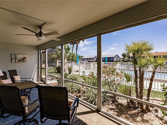 *BRING YOUR OFFERS* to give your client a rare opportunity to own this furnished, light, airy, updated unit that boasts 2 bedrooms, 2 bathrooms, updated kitchen and baths which is minutes from all that downtown Cape Coral has to offer. Master bedroom has a finished walk in closet. This home also enjoys a newer tankless hot water heater, 2022. As well, you have pocket sliders from the living area and master bedroom area to open up to the screened in lanai. The lanai overlooks the canal that flows to the river and on to the Gulf. Steps away from the community pool and the lovely outdoors. Close to many restaurants, shopping and entertainment. Don't miss this rare opportunity to own your piece of paradise. A/C has been inspected and the ducts have been cleaned. New toilet installed in 2nd bathroom. This condo did not have any water or flood damage from Hurricane Ian.