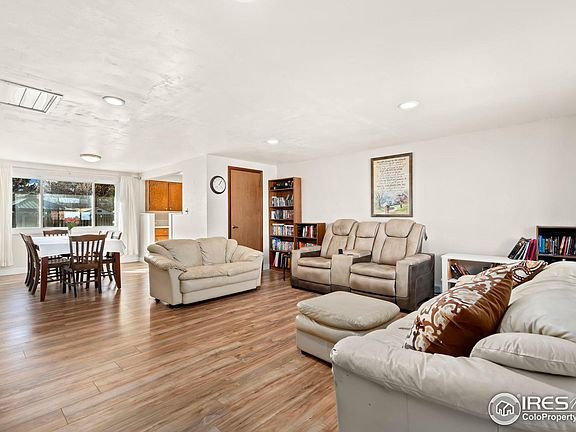 Excellent opportunity in the central part of North Loveland! This 3 bed, 2 bath home makes for easy living with all main floor amenities. Spacious and open living room into the dining room area is great for your gatherings with light and bright LED lighting. Plenty of counter and cabinet space in the kitchen that leads to a flexible family room/ hearth room with a wood fireplace that has been converted to gas. Enjoy the large lot - over 1/4 acre! Updated and Xeriscaped front yard for easy maintenance and lower water bills. In the back, enjoy an 11X13 enclosed porch plus 2 storage sheds - 1 with electric! Easy to move in and make it your own with all appliances included - down to the washer, dryer and a stand up freezer. Ask about possibility for a VA assuming the current VA loan at a great rate!