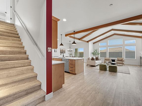 Welcome to the Interlude w/ Bonus Room floor plan by Prodigy Homes, located in the sought-after West Village neighborhood of South Richland! Step inside to an impressive wide entryway with soaring 16-foot ceilings. The foyer includes a mudroom bench and leads seamlessly into the open-concept kitchen and dining area. The kitchen boasts high-end Huntwood cabinets, a large quartz island, spacious pantry, stainless steel appliances, and stylish pendant lighting. The living room features vaulted ceilings with exposed wood beams, a cozy fireplace, and custom built-in cabinetry. The spacious primary suite includes vaulted ceilings and a luxurious ensuite bathroom with a full tile backsplash double vanity, tiled soaker tub, walk-in closet, and walk-in shower. Upstairs, you'll find a large bonus room above the garage, complete with a full bathroom and closet—perfect as a second suite, guest room, or private home office. Enjoy stunning sunset views from the covered back patio. Additional highlights include solar roof tiles to help reduce energy costs and a tandem 3-car garage with epoxy floors. This home is packed with thoughtful details—don’t miss your chance to see it. Contact your favorite Realtor today!