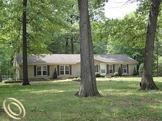 COUNTRY LIVING AT ITS BEST. THIS HOME SITS ON A 1 ACRE CORNER LOT WITH MANY TREES AND MUCH PRIVACY. FEATURES INCLUDE OPEN FLOOR PLAN, OAK KITCHEN AND BATH, NATURAL FIREPLACE IN FAMILY RM, LARGE EAT IN KITCHEN WITH ISLAND. MASTER SUITE WITH GARDEN TUB, SEPARATE SHOWER, HIS AND HER SINKS, WALK IN CLOSET, 2 1/2 CAR DETACHED GARAGE WITH REAR DOOR THAT IS VERY LARGE. LARGE DECK WITH PATIO.