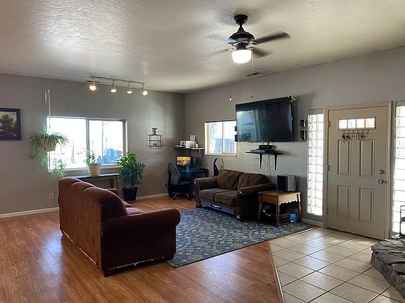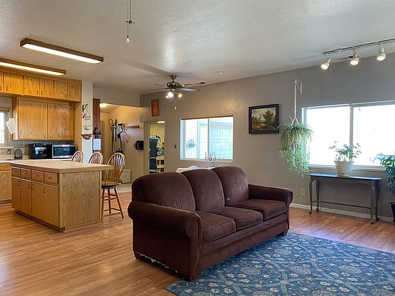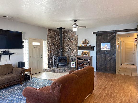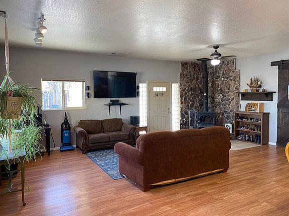 Beautiful Views of Thompson Peak from this level parcel that is fully fenced and ready for you. You will love the 9' foot ceilings as you walk into the front door and the openness of the great room with a living space, dining area and large kitchen with tons of cabinets. Three large bedrooms with built in lofts for extra space. Easy heating with the wood stove and propane forced-air furnace. Two doors lead to the back covered patio from the main bedroom and the kitchen. The oversized two car garage has the laundry, tons of storage and multiple work benches. Don't forget the workshop in back of the garage with it's own half bathroom. Outside is what sets this property apart; it sits off the road, behind all neighbors and with a level yard perfect the 4H animals and a large garden with automatic drip system and chicken coop. The property is surround by beautiful, big trees offering the home lots of shade and privacy. Also, almost twenty freshly planted fruit trees of all kinds of species. Call today!