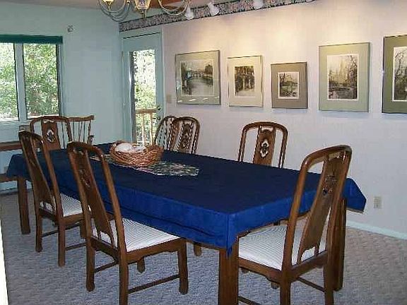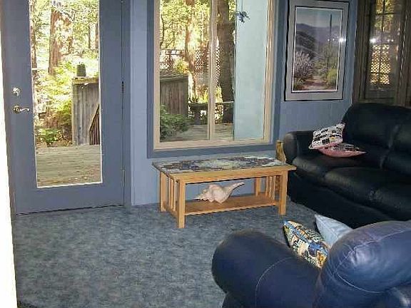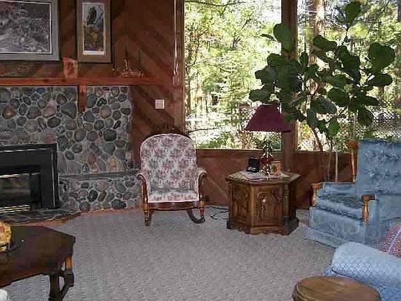 One of a kind custom built home in the pines with views of Thompson Peak. Home features soaring front room windows floor to ceiling with solid redwood beams and paneling. Hand crafted log staircase leads to the loft library. Relax with your favorite book while watching the seasons change outside. There is also a large bedroom with full bath upstairs. The kitchen features a vaulted ceiling with huge walk in pantry. Just off the kitchen is a separate dining room with skylights and a wood burning stove. Never worry about the power going out with the 22KW auto start back up generator which runs the entire house.