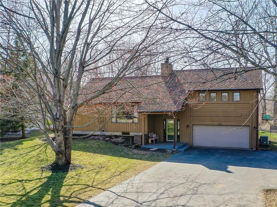 Settle into this 3 (or 4 bed)/ 2.5 bath split in Webster! Nice floor plan with relaxed, easy living space. Clean lines and warm ambiance throughout. The Kitchen offers generous counter and cupboard space, complemented with stainless appliances. The living room has a lovely, raised hearth brick fireplace, perfect for taking the chill off. First floor master with appealing rustic barn door access to the bathroom, modern and space-saving. The Upper level offers 2 beds and a bath. The lower level has a great open space, currently being used as a 4th bedroom, but could be a playroom family room, office, or more. Take the sliders out to the enclosed back porch, with access to the deck, and fully fenced back yard, and fire pit. This property backs up to the Kent Park, Webster Arboretum. Life is worth living in Webster, do not miss this!