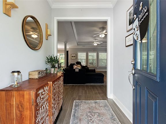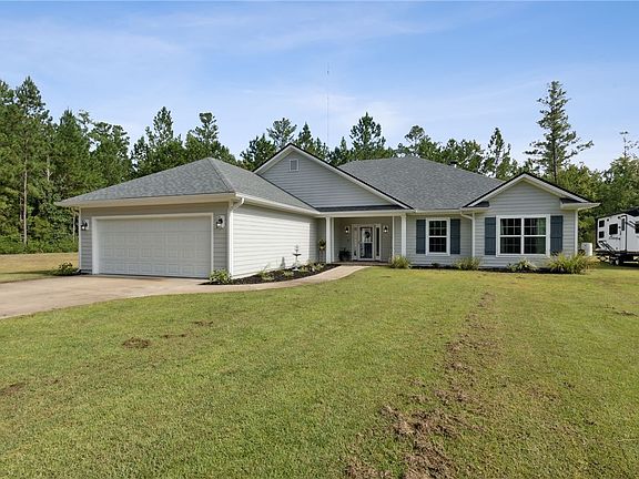 Looking for a peaceful and secluded area to call home but still be near town? Nestled on an expansive 28-acre estate, this stunning 5-bedroom, 3-bathroom home offers just that! With 2,569 square feet of living space, the house has been meticulously maintained and freshly painted throughout, presenting a bright and inviting atmosphere in this open concept plan. The kitchen has newly updated granite countertops, stainless appliances and an oversized island. Your primary suite offers an oasis with a soaking tub, 2 walk-in closets and nice walk-in shower with bench. Spacious guest bedrooms and closets ensure comfort and convenience for you and your guests but you can easily take the party outside to enjoy the amazing outdoor kitchen area, truly perfect for entertaining! Beyond the screened-in porch, you’ll find a a large paved area for outdoor dining and the kitchen houses a Pit Boss, wood burning fireplace, pizza oven, sink and is ran for TV for your football games this fall. The 2 car garage also has a golf cart entryway, great for additional storage. Additional perks include a chicken coop currently housing 5 chickens, a deer stand on the property and a duck migratory flyway making it ideal for wildlife watching or hunting. There are also active bee hives!! A perfect sanctuary for those who value privacy and nature. Come see it today for yourself!