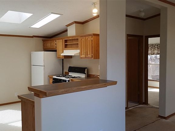 Tucked in the Woods - Log Sided Manufactured Home on 4.90 Acres is move in ready and priced to sell. 2 Bedrooms, 2 Baths, huge living room with a wood fireplace. Open Kitchen with space for a dining table. Huge breezeway connects the 3 car garage with storage room. New carpets, new window blinds, new fireplace surround and new carpets coming soon! No HOA, no dues. An old building site needs cleaning up but hen you discover another well and electric panel there! Worth the Work!
