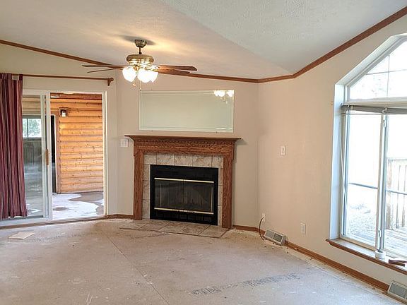 New carpet, new blinds, new fireplace surround, new paint and new carpet coming soon - this one will be move in ready! Lovely setting for this log sided manufactured home, 4.96 acres of rolling lands near the burn but did not burn. 2 bedrooms, 2 baths, cozy eat-in kitchen, three sun decks and a refreshingly shady breezeway with just gorgeous local views. It leads to the to 3 car oversized garage with a storage room. A little outside TLC and this would be a showplace again! There is an old "site" on the property that needs cleaning up and when you do you'll discover there is power and another well ...there so it's worth the work!
