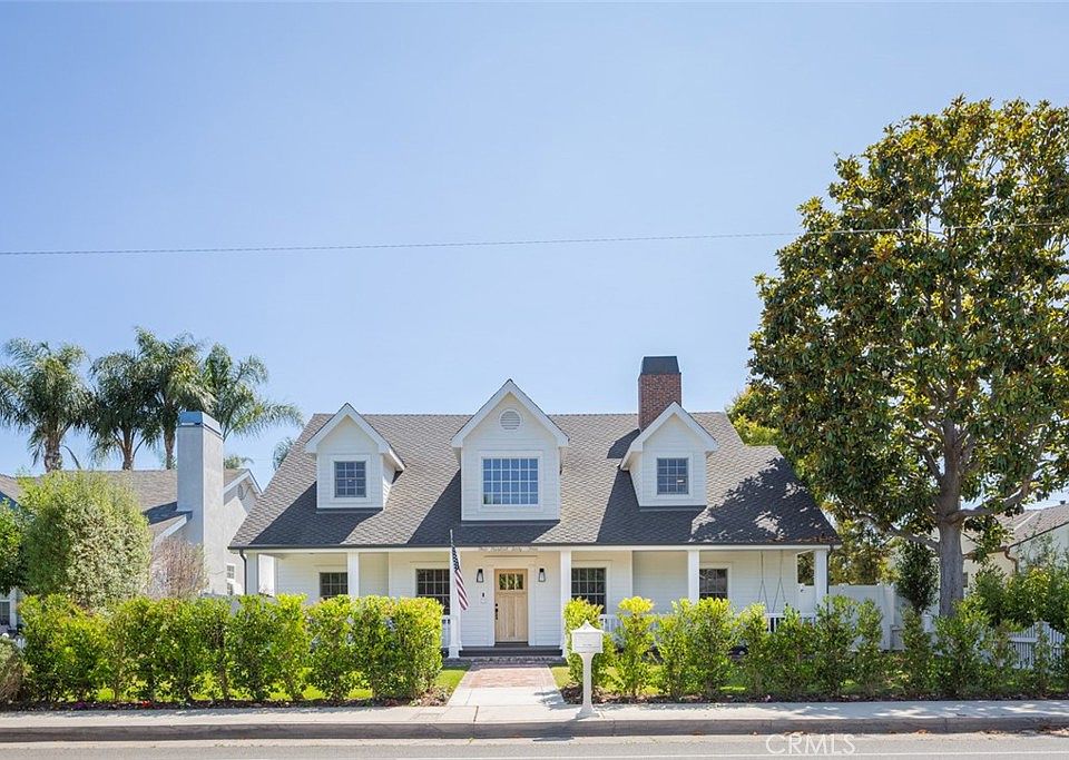 With authentic Cape Cod architecture, distinguished by prominent dormer windows and a broad covered entry porch, this custom Eastside Costa Mesa home appears to have graced its expansive site for generations. Surprisingly, it was recently rebuilt and expanded in 2020 and weaves rich architectural detail with high-end modern-day features. Indoors, principal rooms easily flow from one to the next. A dramatic foyer with multi-tiered staircase and 20' ceiling leads to both a formal living room with marble-finished fireplace, and a formal dining room with built-in buffet and illuminated glass cabinetry, creating ideal spaces for elegant entertaining. From late-night snacks to Sunday brunch with friends, the kitchen and family area enhances every activity with a spacious breakfast room that opens to the backyard via fold-away accordion doors. The height of culinary design is achieved in a beautiful kitchen that showcases quartz countertops, full mosaic-tile backsplash, a breakfast bar, custom soft-close cabinetry, a bay window over a farmhouse sink, a walk-in pantry, and top-of-the-line stainless steel appliances including a built-in refrigerator and a pro-caliber range. Approximately 4,306 square feet, a six-bedroom, five-bath design also offers a versatile upstairs loft, a mudroom/office with built-in desk and a Dutch door, a detached five-car garage, a game room and a library. Select secondary bedrooms host built-in desks, and the primary suite reveals a balcony, walk-in closet, soaking tub, separate shower and a sitting area. Craftsmanship is unparalleled and shines through crown moldings, wainscoting, custom window casings, custom built-ins, in-ceiling speakers, white oak flooring, and designer lighting, wall treatments and paint. Encompassing 7,659 square feet, grounds are highlighted by a large and private backyard with an expansive patio, low-maintenance landscaping and a built-in bar with grill. The home’s desirable location is less than one block from Mariners Elementary School, park and library, and moments from beaches, diverse shopping and dining destinations, theaters, markets and recreation.