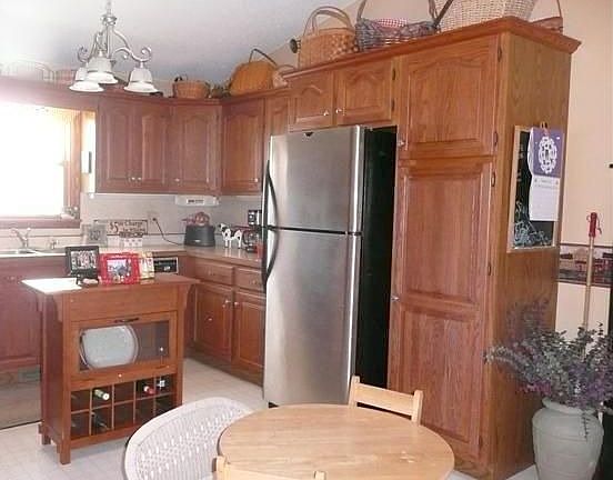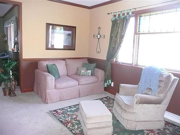 Spacious kitchen with skylight, pantry has roll out shelving, dining area, living room plus a family room. Stained glass in family room window, original stair railing. Wood floors under carpet in the living and family rooms. Beautiful yard features pergola done in 2008, swing set, perennials, blueberries and raspberries. New tear off roof on kitchen portion of home.