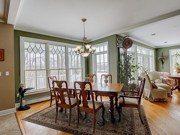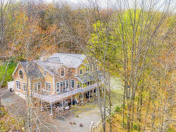 Lake Wallenpaupack Lakefront on 4.48 Acres with 150' of lake frontage and 3 slip floating dock. A truly spectacular 4 BR, 4 BA home with its detailed planning made evident from the custom design, value added finishes and superb functionality throughout its 4600 square feet of living space. Enjoy the lake views from every angle in the grand main living areas. Custom manufactured windows and doors, coupled with a soaring double-sided floor to ceiling stone fireplace create a wow factor while maintaining a peaceful character. Gather friends and family around your dream kitchen with the best of everything you would expect in any first class kitchen.