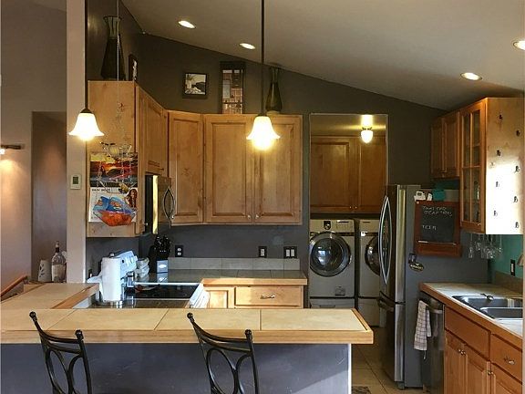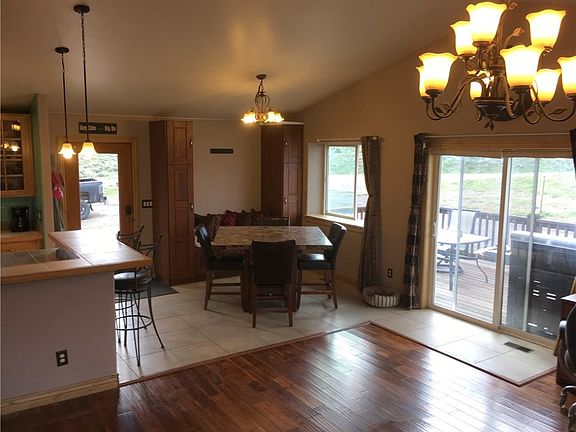 4 bed, 3 bath with finished walk out basement on .75 acres backing to private ranch land. NEW EXTERIOR STAIN looks great! Fenced yard, heated 2 car garage. Laminate and tile flooring. Basement includes built in bar and family room. Master suite features sunken tub, double vanity, custom tile shower. Vaulted ceilings, gas fireplace in great room. PRIVATE BLUE RIVER fishing rights. Hot tub and volleyball net.