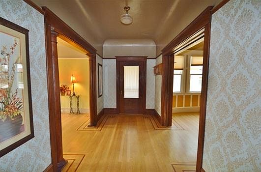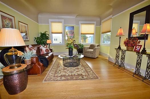ENERGY-EFFICIENT HOME IN ALAMEDA'S WEST END Built in 1908, this delightful 1,580 square foot Colonial Revival home features 3 bedrooms and 2 bathrooms. An elegant and open foyer leads to the living room on the right and the dining room on the left -- which together with coved ceilings, a pocket door, wood columns in the foyer, inlaid hardwood floors, dual-pane windows, a wood-burning fireplace in the dining room, and other wood detail -- make this area truly ideal for family living, family get-togethers and entertainment. Straight ahead of the foyer is a full updated bathroom with dual sinks and a tubular skylight. There is a bedroom off to the left of this bathroom, and another off to its right with a Murphy bed. Adjoining the dining room is a brightly-lit kitchen with tile countertops. To the right of the kitchen, there is a good-sized master bedroom and an updated master bathroom which also has dual sinks, a tubular skylight and radiant floor heating. The shady, private and low-maintenance backyard with drought-tolerant landscaping features a large mature avocado tree, flagstone walkway and a kid's play structure and provides the perfect setting for backyard entertaining. It is certainly spacious enough to accommodate good-sized parties. The backyard is also big enough to provide more space for gardening and accommodate a ground-hugging deck in the future for added convenience. At the street level, the 7 tall full basement includes a 1-car attached garage that is equipped with a 220-volt electric car charger. Adjacent to the garage, the remainder of the basement accommodates a high-efficiency central heat system, a tankless water heater and an abundance of room for a workshop and storage. 463 Haight Avenue is also equipped with numerous other desirable features. The rooftop photovoltaic solar panel, the large insulated attic and insulated walls and floors at the main level, solar-powered attic ventilators, dual-pane windows, and the high-efficiency central heat unit -- all working together -- help conserve energy during the winter, keep the home cooler during the summer, and result in lower electric and gas bills throughout the year. A newer 40-year roof, newer gutters, copper plumbing, some electrical upgrades, and custom honeycomb shades further enhance the appeal of this very attractive home. For a copy of the 2-page flyer with floor plans,click here. For a virtual tour of 463 Haight Avenue, click here.