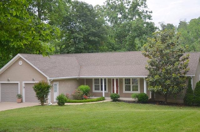 Beautiful ranch on full basement with path to the lake access. This home is perfect for someone wanting to live on the lake year round, or a great weekend retreat. Home features 4 bedroom, 3 full baths, 2 zone heating, custom cherry cabinets, 14 foot island with center sink. Dining area situated so everyone can enjoy the views of the trees and lake. Family room features vaulted ceiling and fireplace w gas logs. There is a large screened porch with plenty of room for dining and a full size hammock. First floor has 2 large bedrooms with adjoining baths. Both bedrooms have abundant closet space. First floor utility / mud room offers custom cherry cabinets, utility sink with washer dryer hook ups. Lower level features large family room, fireplace with gas logs, sitting area with great view of the lake, work out area, exterior doors leading to patio with steps to screen porch above or walk to water. 1 Yr HMS warranty w/accepted offer. Seller is licensed real estate agent in Kentucky.