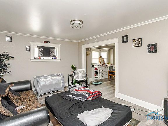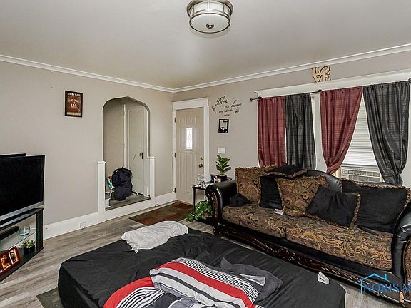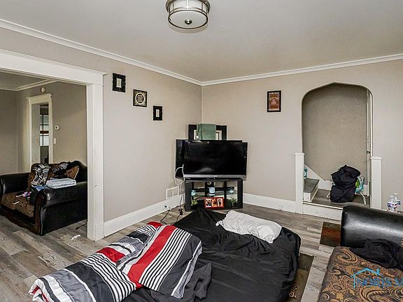 Solid 3BR/1BA home in East Toledo with over 1,000 sq ft. Traditional layout with living room, dining room, kitchen, three bedrooms up, and full basement. Exterior features include a covered porch, fenced yard, and 2-car garage. Currently rented Section 8 at $1,165/m, providing guaranteed income and strong cash flow.