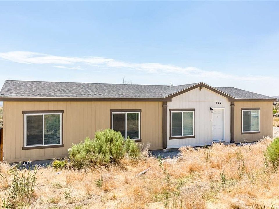Looking for a NEW permanent manufactured home? Well this is it 4 bedroom 2 bathroom 1822-SF. Great corner lot w/ a beautiful ruby view. Laundry room with cabinets, huge kitchen w/ island that has plenty of room for stools and has a pantry. Master bedroom and bathroom are huge. Master bathroom has walk in shower/closet and double sinks. Home has central air and is ALL electric.