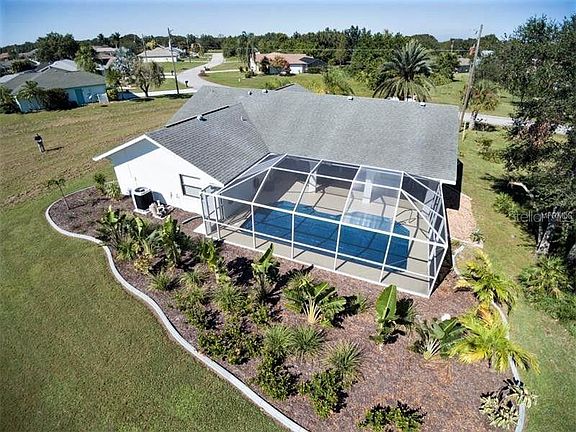 "Breath of Fresh Air" feel from the moment you enter this move-in ready 3 Bedroom/2 Bath Pool Home! A Modern Great Room Design with clearstory windows providing tons of natural light. The split bedroom floor plan gives you lots of privacy between en-suite and guests. The open kitchen with newer stainless steel appliances has a large center island/bar with solid surface counters and solid wood cabinetry. Pocket sliding doors throughout open out to a tropical oasis. The pool and relaxing lanai is the perfect place to enjoy entertaining, BBQing, and spending time with those you love. Swim all year round in the heated pool, surrounded with lush tropical landscaping you will love the privacy and serenity! New water heater and pool pump. Located within a quiet culdesac with wonderful neighbors. In the heart of the beautiful sought after Deep Creek Community. Many peaceful lakes and greenbelts throughout. Plenty to do with a local golf course, Local fitness center, nearby public boat ramps, playground, basketball, tennis and pickleball courts. Home is conveniently located to I-75 and US41 with many local restaurants, shopping, fishing, boating, and beautiful gulf beaches nearby. Don't wait to build a cookie-cutter home. This elegant home is well maintained and in the center of paradise. Want to live the dream, you can find it in this home.