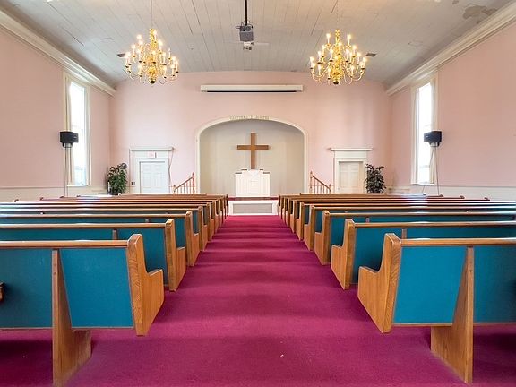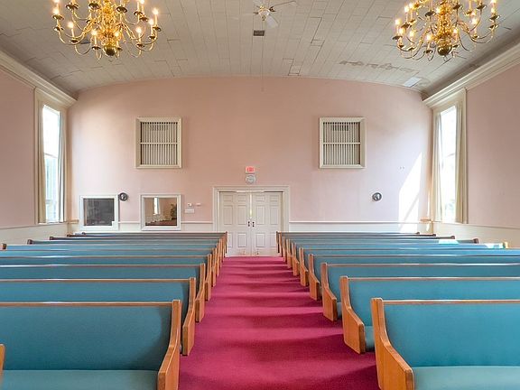 Classic New England church located downtown Greenfield in the midst of all the excellent activity there. Fully equipped kitchen and large dining area. Brand-new library across the street, YMCA next door, movie theater just down the street, great restaurants. The train service is quickly available tor venturing out of the area along with easy access to ski areas and water sports and zip lines. Zoned semi-residential for possibilities. Great location for your imagination.