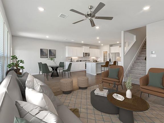 Trophy Series of Homes really connects with buyers who want a separate, dedicated home office but don't want to lose out on living space. The modern exterior with beautiful stone accents gives the feel of true sophistication and the bright and open interior makes it feel like home. With 2 floors it's buyers' choice to spend time sitting near the fireplace, situated at the kitchen island on a bar stool or in the second-floor game room. Just over 2400 sq. ft means room for all and the first-floor master provides the owner a true oasis. 2" faux wood blinds are standard. Our low HOA gives you access to the pool and walking trails!