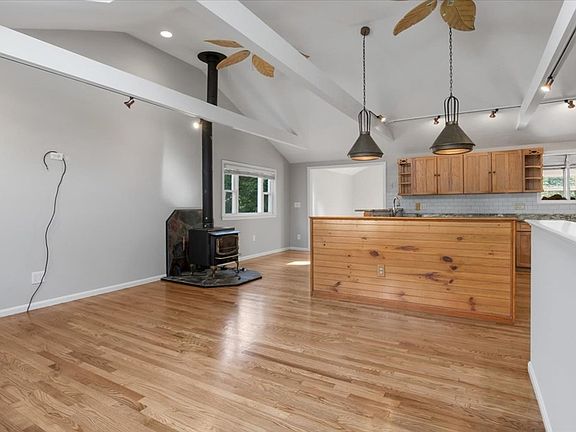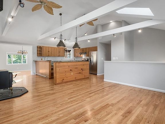 This 1968 built split-ranch style home sits on a lovely corner lot in desirable W. Bridgewater. A gut renovation took place in 1997 and this is just the tip of the iceberg. The interior has just been tastefully painted and new carpet installed in the 3 main floor bedrooms. Great floor plan for entertaining...a dramatic vaulted ceiling living room with skylights & wood wood-burning stove opens into a cabinet-packed kitchen with granite countertops and newer stainless steel appliances (replaced 2020-2021). Beautiful hardwood floors, red oak, installed (2003 -2004). Dining room addition and three-season sunroom (added in 2007). Roof, skylights & bay windows (2017). Bathroom remodeled (2019). Fence, deck and front entry stairs (2020 & 2021). Furnace – heater box replaced (2017). 4 bedroom septic was replaced (2004). Fenced-in yard with shed. The finished walk-out out lower-level has a 4th bedroom as well as a family room with fireplace & bar & laundry/utility room. Offers due Mon@ 5:00