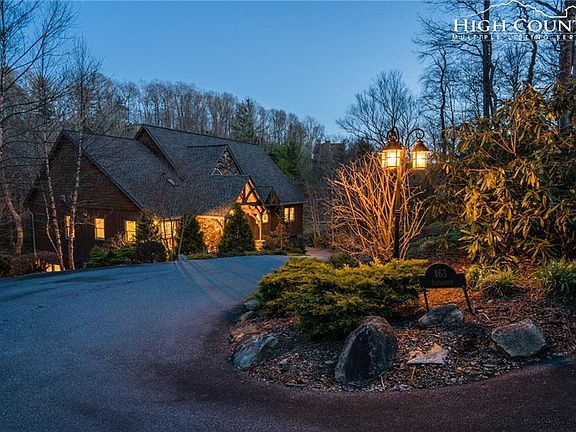 Tasteful elegance, tucked away and surrounded by nature, right in the middle of Blowing Rock. This beautiful home offers one level living, showcasing a timber frame living room with 26 ft cathedral ceilings, a wormy chestnut mantle that frames an incredibly naturalistic gas log fireplace and Brazilian cherry floors throughout most of the main level. The living and dining areas both open to the spacious covered deck that overlooks the lake and enjoys the magical song of the rushing creek. The gorgeous chefs kitchen includes Viking stainless steel appliances, double ovens, an oversized island that houses a wine cooler, gas cooktop, granite countertops, push button closing microwave and self closing drawers. The master bedroom, which also has access to the covered deck, boasts his and her bathrooms comprising of a beautifully tiled shower, whirlpool tub, granite countertops with vessel sinks and two large walk in closets. A 2nd bedroom and full bath complete the main floor. Downstairs you enter a lovely family room that leads out onto the lower deck, 2 bedrooms, 2 full baths and adorable, innovative space that could be used as a reading area, bunk area or nursery.