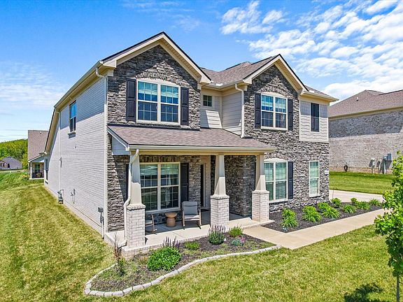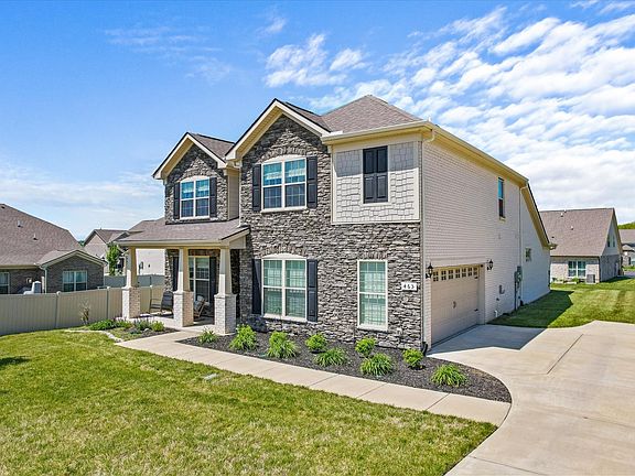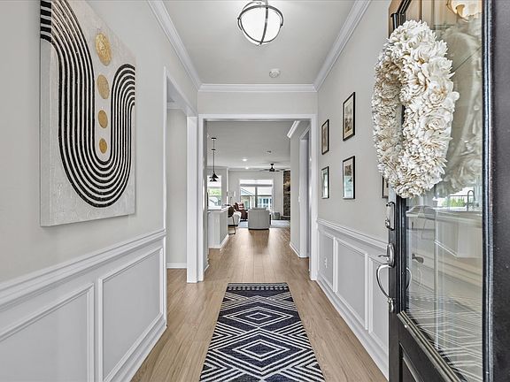 Welcome home! Why purchase new construction, when this seller has already opted for numerous high-end upgrades, a designer lighting package & installed roman shade window treatments all throughout this stunning, like-new 5 bed, 3 bath home. Basking in natural light, the home is the perfect balance of functionality and luxury - picture spending cozy evenings by the gas fireplace, lounging in the sunroom, or entertaining in a chef's dream kitchen featuring a large oversized island/bar, quartz countertops, white cabinetry, and a gas cooktop. The primary suite is conveniently located downstairs, with a guest suite or office located on the opposite wing. Upstairs, find a spacious bonus room perfect for a playroom or media center, and three additional bedrooms, all with large walk-in closets. Enjoy the convenience of an attached two-car garage, manicured yard, and a close-knit community with large pool, playground, and clubhouse. This home offers luxury living with neighborhood charm.