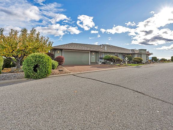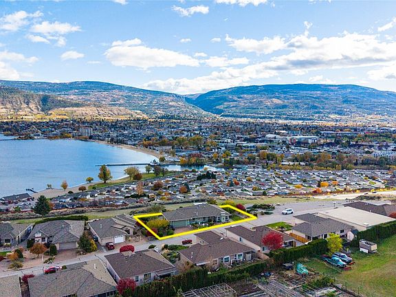 Welcome to your new dream home nestled up on the hillside with panoramic views of the sandy shores of Penticton's beach and the shimmering waters of Okanagan Lake. Breath in the vibrant lifestyle of this 40+ community while sipping your morning coffee or evening glass of wine in your private back yard while taking in these unobstructed view with four different fruit trees and a beautiful landscaped yard to enjoy. These views are just the cherry to this double lot with room to host. This 2 bed plus den, 2 bath bungalow has a beautiful formal dining and sitting area with natural skylights for added natural light. Double car garage and lots of space for a Man Cave with work shop! This is by far one of the most desirable lots in this community, a must see.