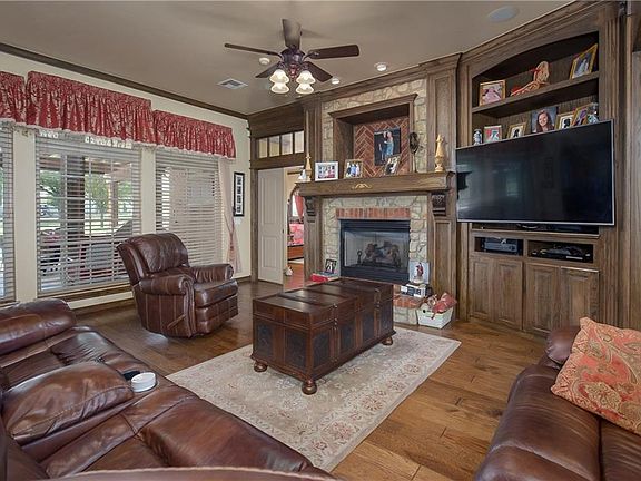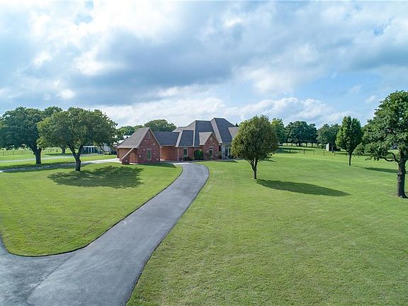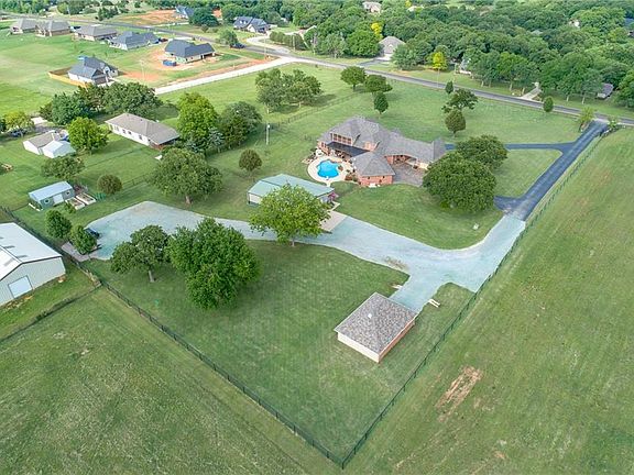 Do not miss this amazing one owner 4 bedroom, TWO studies with built ins, bonus room with projector screen and full theater system, beautiful crown molding throughout, and so much more! Main home is 4228 square feet. Outside you will find a 1500 square foot additional living quarters with 2 apartments (separate living, and full bathrooms) with an additional full bath between in the utility area! Salt water pool with beach entry and two walk outs is SO low maintenance. Covered TV on the back porch allows for the amazing entertaining area. Sprinklers in front and back cover about an acre of the area. There is also a 30x50 bricked additional detached garage. 3 AC units, 3 tankless water heaters, ice maker, trash compactor, roll out windows, and fully fenced with privacy gate. 8-12 person storm shelter conveniently located off the back porch. Property is on water well with great pressure but city water is available.
