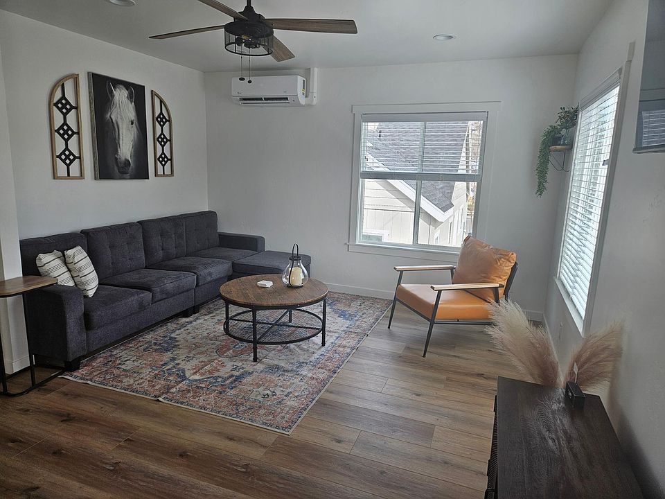 Newly remodeled furnished one bedroom, one bathroom apartment within walking distance to downtown. This cozy and modern unit offers a comfortable living space with well-designed layout. Fully equipped galley kitchen with dishwasher, microwave and all essentials. Separate dining room and large stylish bathroom with walk-in shower. New stackable washer and dryer and mini splits for heat and cooling. New linens are provided for each guest. You will have everything you need for a convenient and enjoyable stay. Owner pays water, sewer, trash and internet. Tenant responsible for electric.