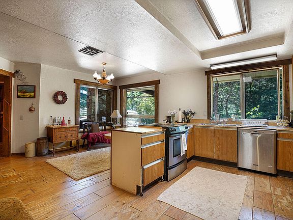 Motivated Seller Alert! This is your golden opportunity to make this slice of country paradise yours. A nature Lover's Paradise, nestled amidst towering evergreens and perched on the high bank of Slide Creek, this stunning country home is a true sanctuary for those seeking serenity and nature's beauty. The bright, open kitchen is the heart of the home, perfect for culinary adventures. With 4 ample bedrooms and 3.5 bathrooms there's room for everyone. A large barn offers ample storage space and opens doors to a world of possibilities. Whether you dream of equestrian pursuits, hosting workshops, or simply need space for all your hobbies, you'll find it here. Enjoy 15 private acres of diverse land with irrigation rights, an established orchard and fenced garden area. Don't miss out on this as-is property that's brimming with potential. With your vision and a bit of work, you can turn it into the home you've always wanted. Take advantage of this opportunity and schedule a viewing today