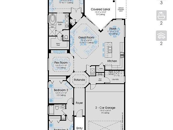 This Americana-inspired Whitman is a single story home that features 1961 sf of living space, 2 car garage, 3 bedrooms and 2 bathrooms. Upon entering the home, the foyer and rotunda lead to the open flex room, kitchen and great room. A large covered lanai is located at the rear of the home. The master suite and ensuite bathroom has a huge walk in closet for the homeowner. Two secondary bedrooms share a hall bath. A mudroom and separate laundry room are located in a private area of the home.