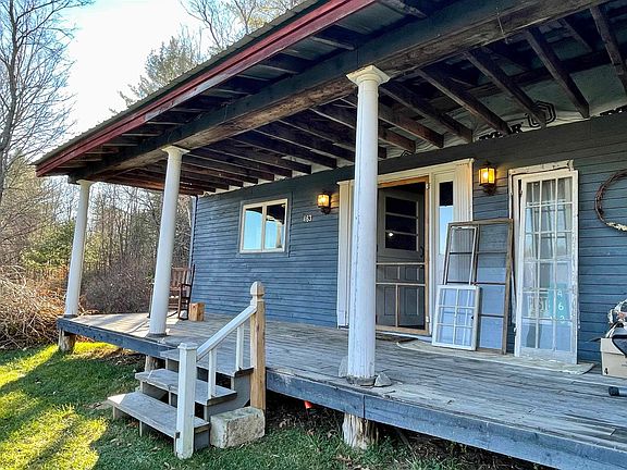 Situated on a country gravel road but just a short distance to a paved road. Less than 5 minutes to Harvey's Lake and I-91. This work in progress has had many upgrades and is being sold with many tools and supplies to complete more. Situated on 3 acres of land (acreage on both sides of the road) with an updated septic and foundation in 2004, metal roof and updated windows. This charming cape offers a large covered front porch, wide pine floors and open beams. Plenty of wildlife in the area as well. A great winter project! This property will not qualify for FHA, VHFA, RD or VA financing. Road frontage is estimated. Tools, building supplies and misc personal property convey with the property.